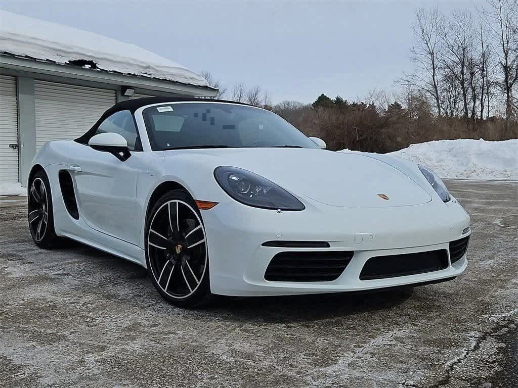 Leather Seats, Heated Driver Seat, Back-Up Camera, Satellite Radio, iPod/MP3 Input, Bluetooth®, Aluminum Wheels, Dual Zone A/C, Smart Device Integration, Apple CarPlay® Rear Spoiler, MP3 Player, Keyless Entry, Rollover Protection System. Serviced here, Non-Smoker vehicle, MANUAL! Amazing spec! White 2024 Porsche 718 Boxster 2.0L Turbocharged 6-Speed Manual RWD AG Interior in Black 0Q White PL2 Premium Package 489 Heated Multifunction Steering Wheel 541 Ventilated Seats 715 Power Folding Exterior Mirrors incl. Courtesy Lighting 457 Lane Change Assist (LCA) 625 Porsche Entry & Drive 630 Light Design Package 581 Luggage Net in Passenger Footwell 546 Supplemental Safety Bars in Exterior Color 494 718 Logo on Rear in High Gloss Black XYB Exclusive Design Fuel Cap Porsche 718 Boxster with White exterior and Black interior features a 4 Cylinder Engine with 300 HP at 6500 RPM*.