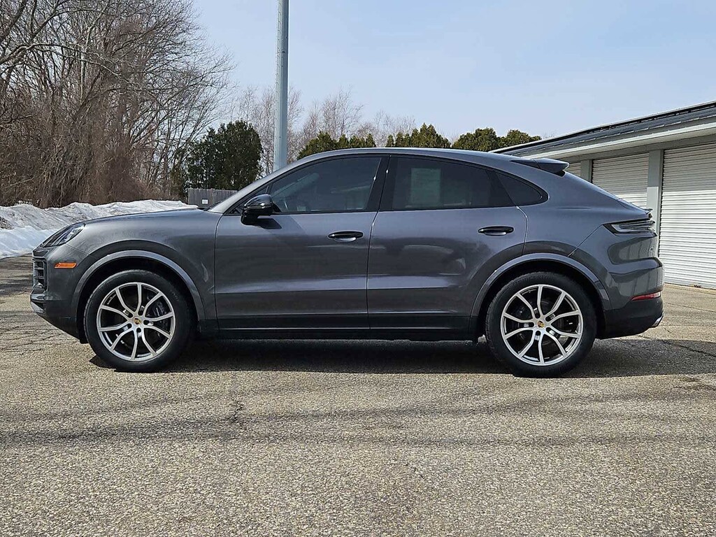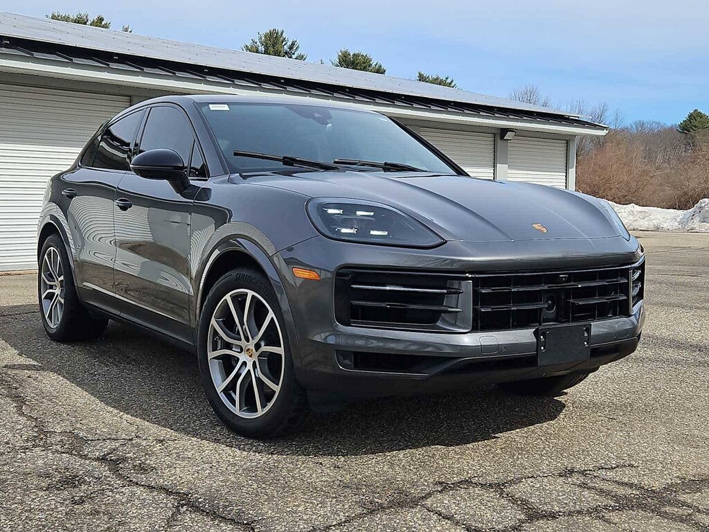 Leather Seats, Navigation, Sunroof, Panoramic Roof, All Wheel Drive, Power Liftgate, Heated Driver Seat, Back-Up Camera, Satellite Radio, iPod/MP3 Input. Rear Spoiler, MP3 Player, Keyless Entry, Privacy Glass. Serviced here, Non-Smoker vehicle, PORSCHE CERTIFIED! SPORT CHRONO PACKAGE! INTERIOR PERSONALIZED OPTIONS! Quartzite Grey Metallic 2024 Porsche Cayenne Coupe 3.0L V6 8-Speed Automatic with Tiptronic AWD AN Interior in Black 3M Quartzite Grey Metallic 5J9 Upper Wing in High Gloss Black 6FH Exterior Mirrors in High Gloss Black UD1 Under Door Puddle Light Projectors 2W6 Exclusive Design Fuel Cap 6JA Door Handles in High Gloss Black 8LC Sport Chrono Package with Compass Display 0P8 Sport Exhaust System incl. Tailpipes in Si Porsche Cayenne with Quartzite Grey Metallic exterior and Black interior features a V6 Cylinder Engine with 348 HP at 5400 RPM*.