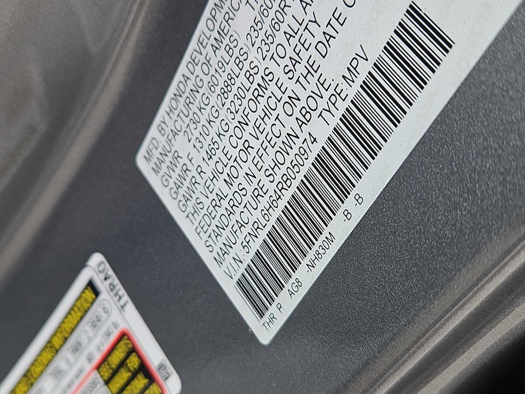 Leather Seats, Third Row Seat, Moonroof, Power Liftgate, Rear Air, Heated Driver Seat, Back-Up Camera, Satellite Radio, iPod/MP3 Input, Bluetooth® Rear Spoiler, MP3 Player, Power Third Passenger Door, Remote Trunk Release. Honda EX-L with Lunar Silver Metallic exterior and Gray interior features a V6 Cylinder Engine with 280 HP at 6000 RPM*.