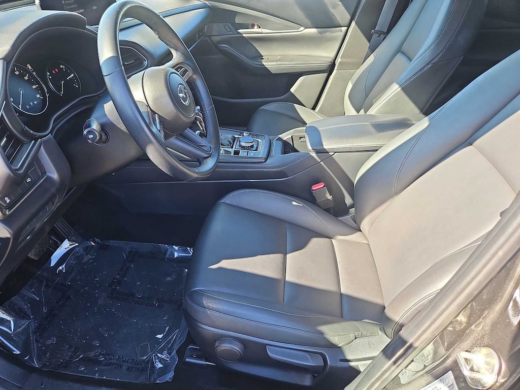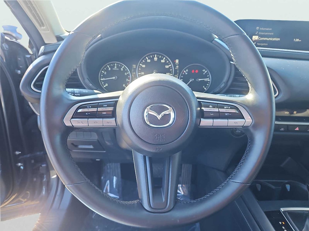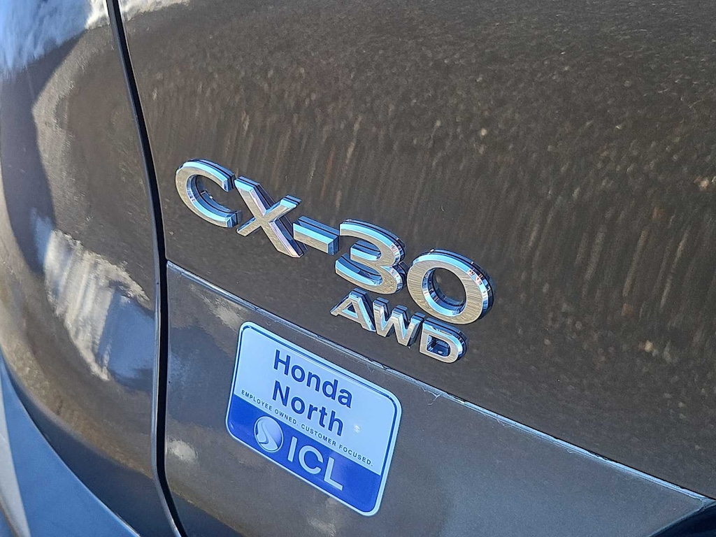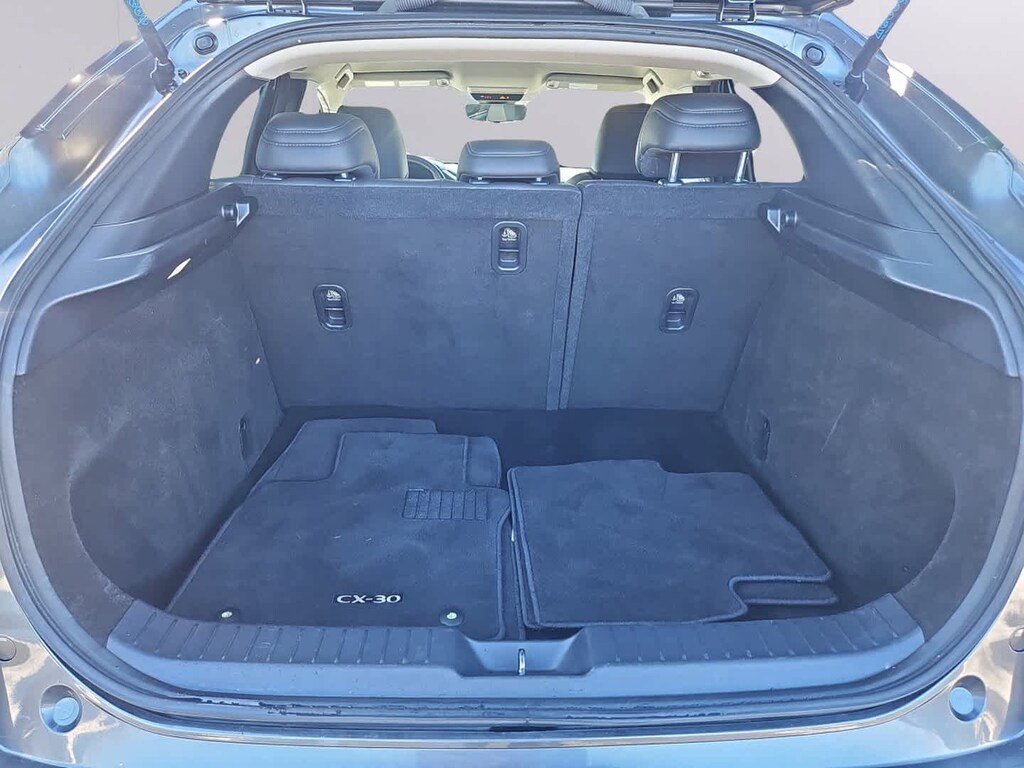 All Wheel Drive, Back-Up Camera, iPod/MP3 Input, Onboard Communications System, Aluminum Wheels, Keyless Start, Dual Zone A/C, Apple CarPlay®, Brake Actuated Limited Slip Differential, Smart Device Integration Rear Spoiler, MP3 Player, Keyless Entry, Privacy Glass. Non-Smoker vehicle Mazda CX-30 2.5 S Select Package with Machine Gray Metallic exterior and Black interior features a 4 Cylinder Engine with 186 HP at 6000 RPM*.